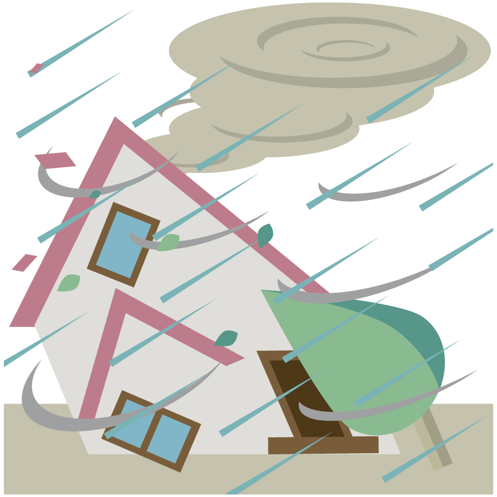 台風の被害にあった家のアイコン